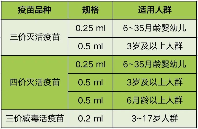 注:三價減毒活疫苗為鼻噴流感疫苗;本市不同區域供應不同生產廠家的疫苗,具體以門診實際供應的疫苗為準。